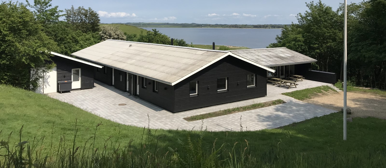 Der er en dejlig sydvendt terrasse lige udenfor salen og stuen med 3 borde/bænkesæt.